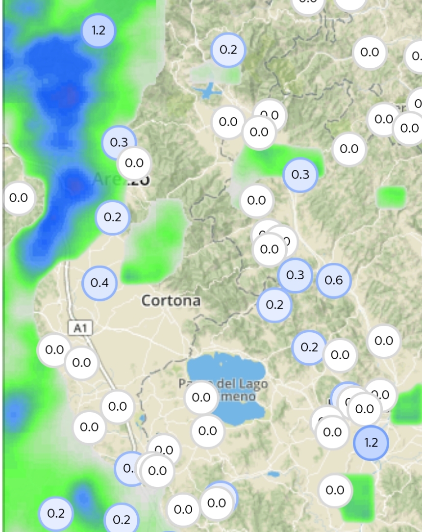 Ieri minima di 9,3° e massima di 20,3°, finalmente pioggia pure a Deruta con un accumulo dignitoso di 10mm