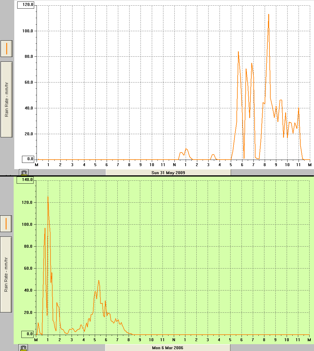 A tal proposito un confronto tra le 2 mostruose fasi piovosi, molte analogie nei picchi d'intensità e anche nell'andamento della fase in generale...giudicate voi stessi: