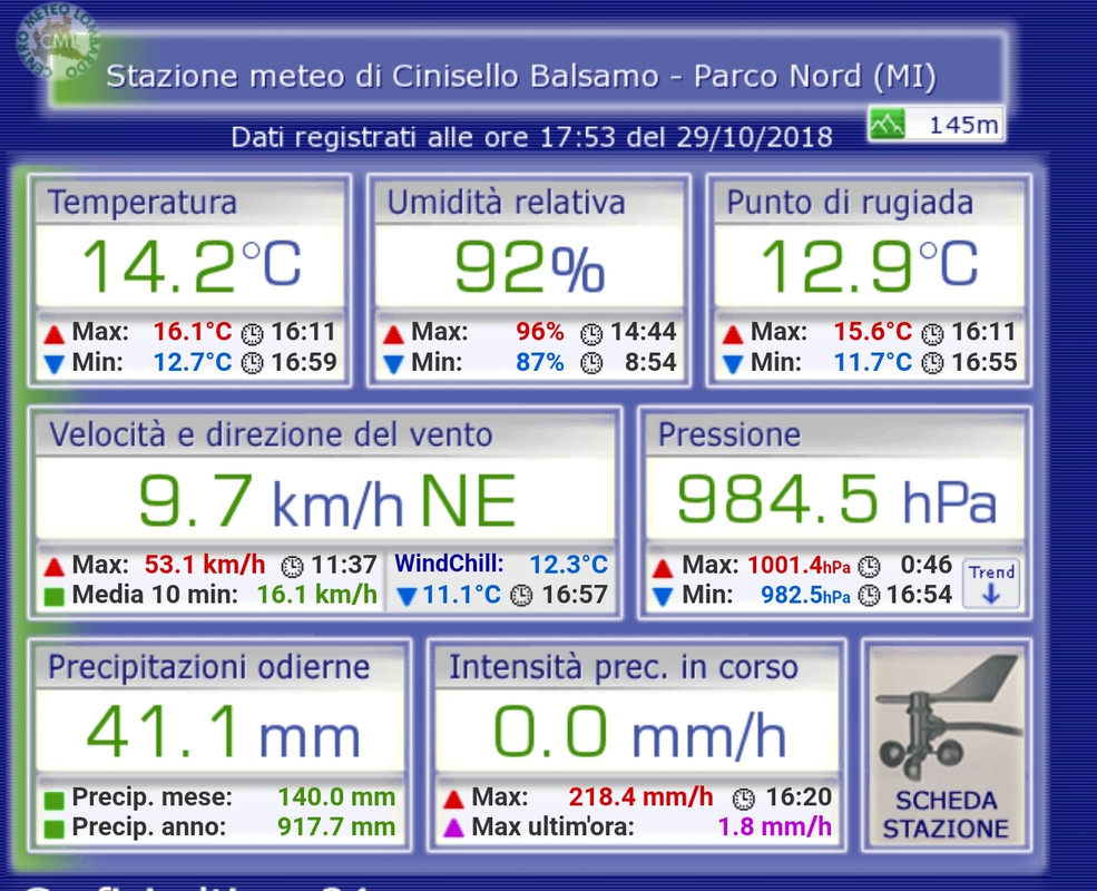 temperatura che dopo il passaggio del fronte è andata calando fino agli attuali + 16.3°