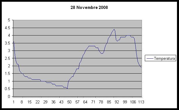 Giornaliero assai lontano da tale quota, in quanto alle 1 di notte, 5 ore prima che iniziasse a nevicare, la temperatura era salita oltre i +4°C.