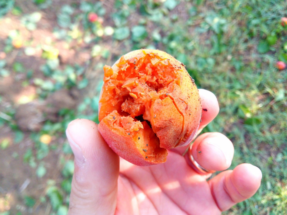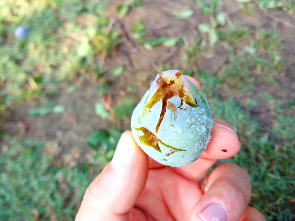 La dimensione dei chicchi mi è stata raccontata grande come una piccola pesca, di forma sia sferica che a denti.