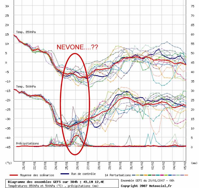 2:Formzione di un minimo che richiama aria umida dal tirreno, con sovrascorrimento di aria leggermente più calda su quella fredda preesistente e venti al suolo orientali...in pratica la configurazione perfetta per la neve in Umbria. Rischiano Terni, Narni e Orvieto, anche se con quelle correnti al suolo la vedo bene anche per loro...