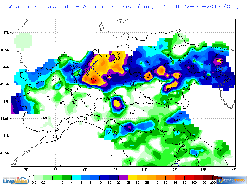 Come già segnalato da Boba, la fascia da Milano a Lecco, passando per Monza, è stata duramente colpita, fiume Seveso che ovviamente ha dato "spettacolo" a Milano (mentre Londra con il Tideway project prova a mettere la museruola al Tamigi, in Italia, meglio nella civilissima ed avanzata Milano, non riusciamo a controllare, nel 2019, nemmeno un torrentello che è 1/3 del Topino ....  ).