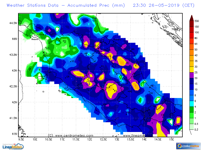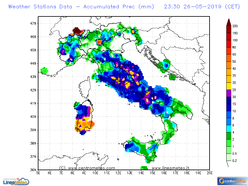 Con 23.4mm elettronici la giornata del 26.05.2019 risulta essere la più piovosa del mese... alla faccia dello scirocco