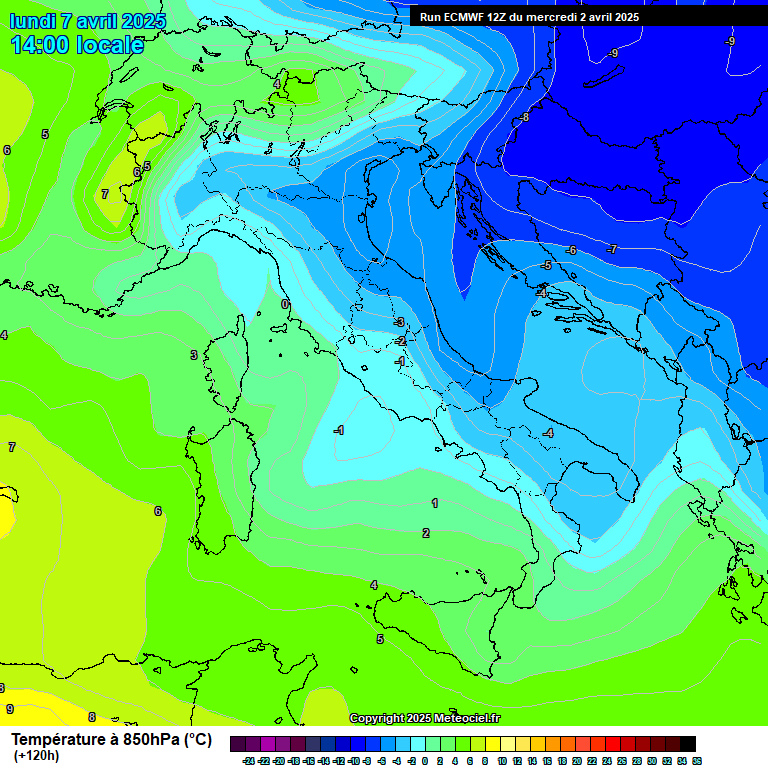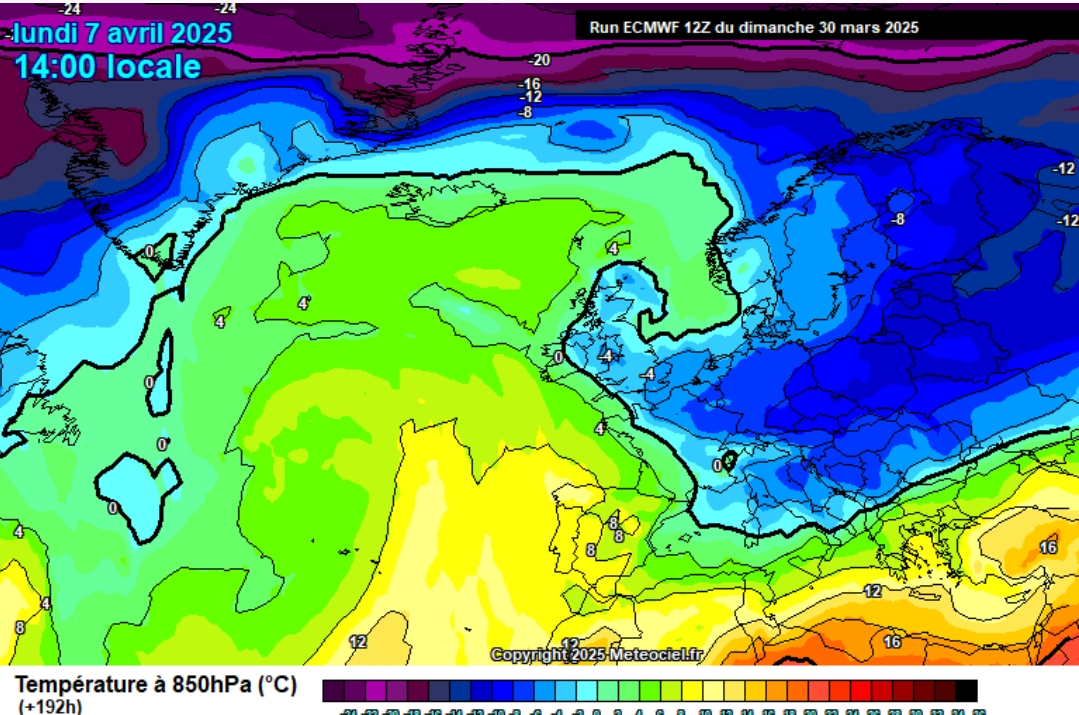 Aprile inizierà con una prima rasoiata fredda nella giornata di domani e dopodomani che porterà isoterme di poco superiori agli 0°C ad 850hpa al centro italia