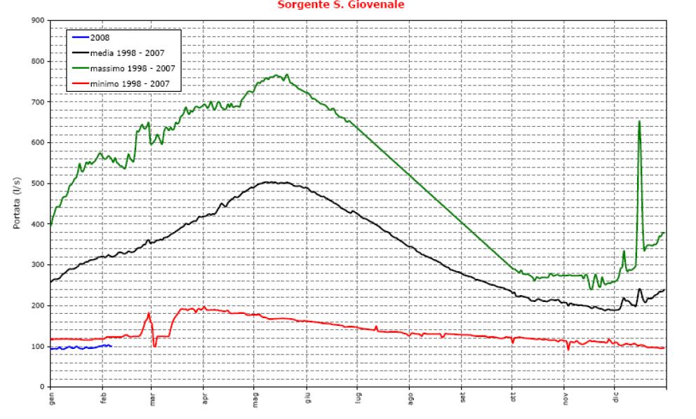 Situazione immutata anche per le sorgenti umbre che continuano a vivere un momento di particolare difficoltà. A partire da quella di Bagnara che dopo una leggera ripersa a cui si è assistito nel mese di gennaio con una portata che aveva raggiunto i 57,5 litri al secondo, si è oggi scesi a 30,3 l/s.