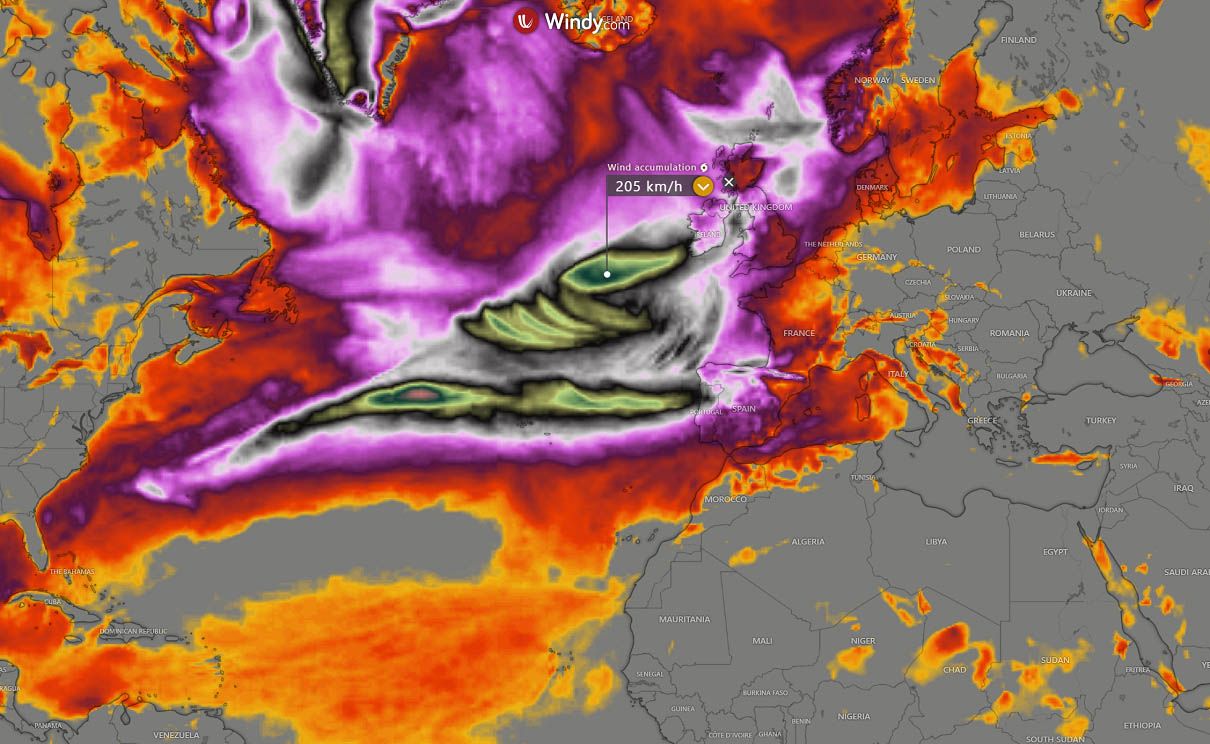 Andando avanti di pochi gg, l’aria fredda in discesa dall’Artico sugli Stati Uniti, presa dalle westernlies, virerà verso l’Europa, formando una violenta depressione su Irlanda, Inghilterra e Scozia, con coinvolgimento anche della penisola iberica, nel particolare per piogge e venti.