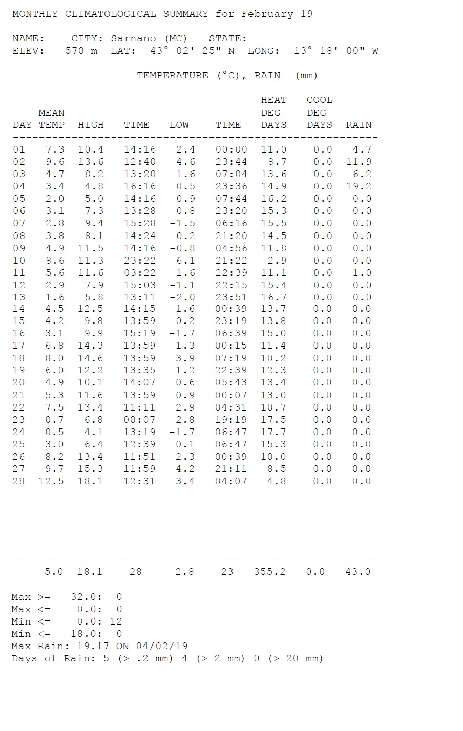 Scrivo qua perchè mi riferisco al solo febbraio e non all'intero inverno. Qua pubblicherò anche appena faccio in tempo il consueto resoconto delle temperature medie del centro Italia.
