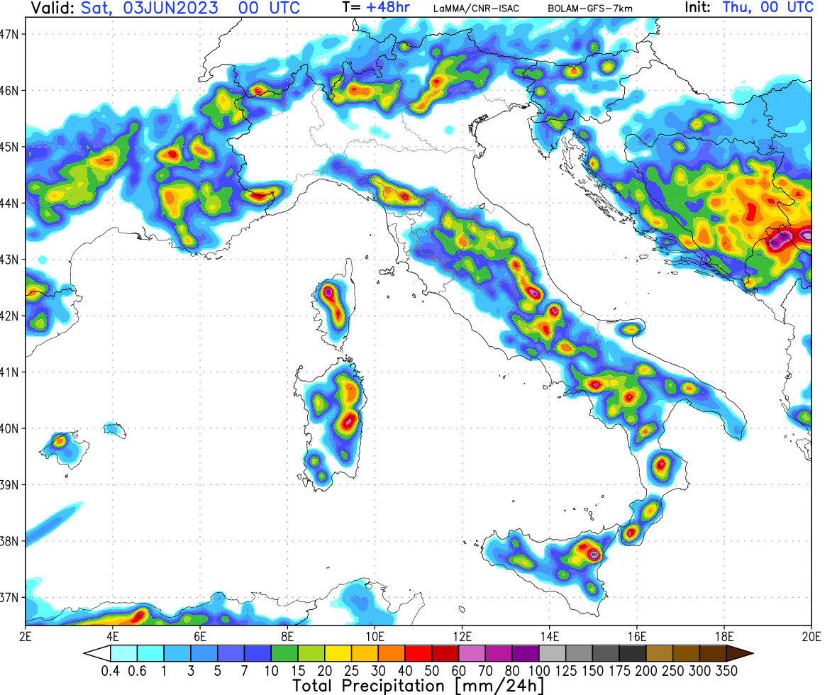 il 2 giugno è statisticamente una giornata molto instabile e dagli spaghi vedo precipitazioni che si protraggono dal panel pomeridiano fino a quello notturno, quando normalmente vedi il picco pomeridiano e basta