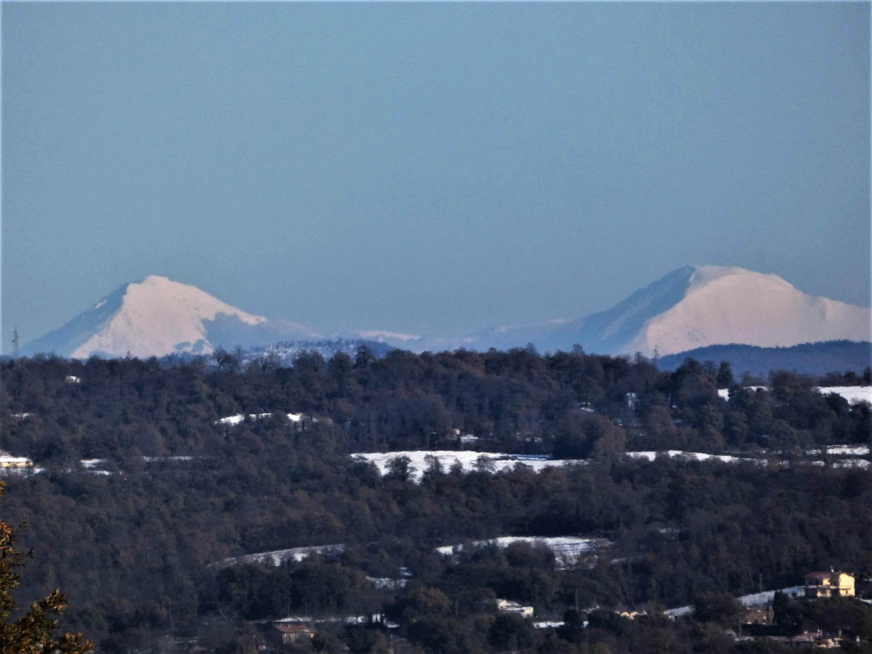 Foto di bassissima qualità perché fatte col telefono sotto al sole di mezzogiorno e sgranate. La visibilità oggi era altissima; oltre i 150 km, per l'umidità bassissima grazie all'impulso freddo e alla tramontana e dal colle dell'infinito si vedevano il Gran Sasso e la Majella, oltre ai sibillini innevati che sono mancati per quasi tutto novembre