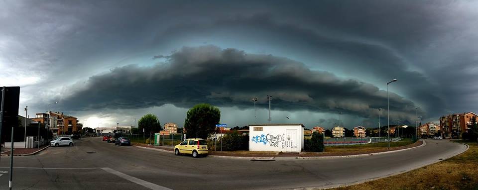 La forte cella temporalesca immortalata ieri, lungo la superstrada all'altezza di Jesi (AN) , quella che successivamente ha dato vita a un'escalation di temporali che dall'anconetano si sino spinti fino al fermano