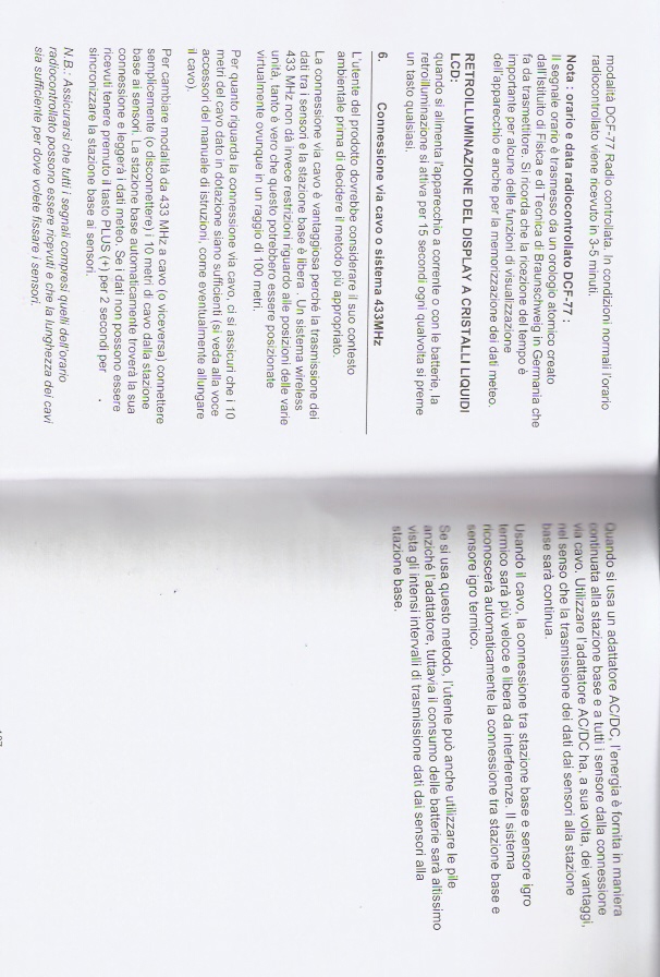 Alla pagina 187 del manuale dice che se si usa l'adattatore AC/DC l'energia è fornita alla stazione base e a tutti i sensori dalla connessione via cavo....in pratica usando la base con la corrente l'adattattore alimenta anche i sensori esterni collegati via cavo......