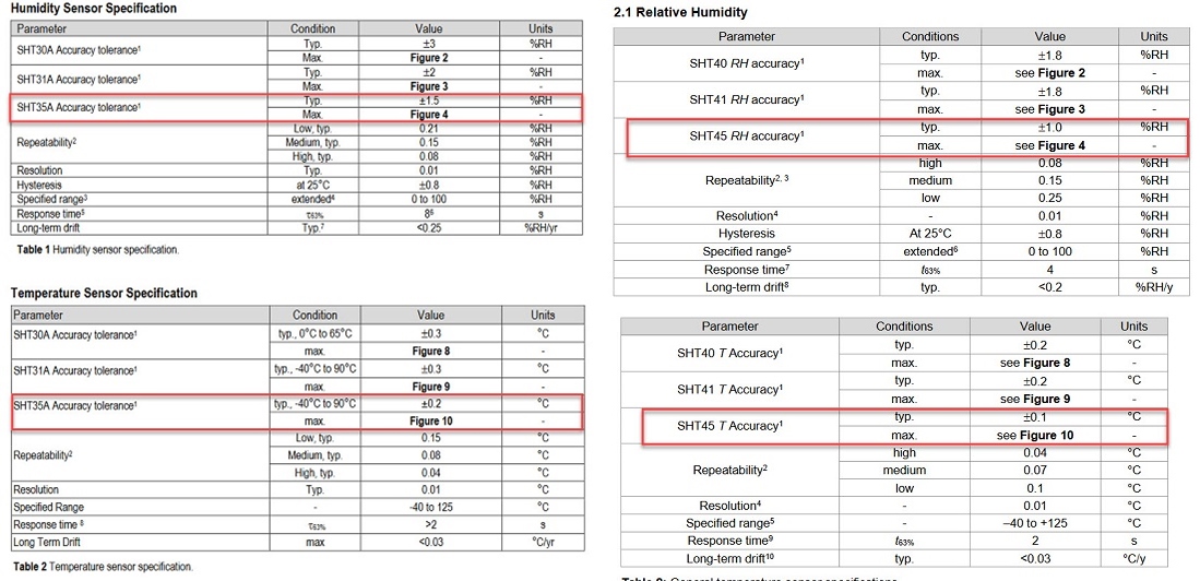 Analizzando le caratteristiche dell'SHT35/45, due parametri sono molto interessanti per il nostro scopo :