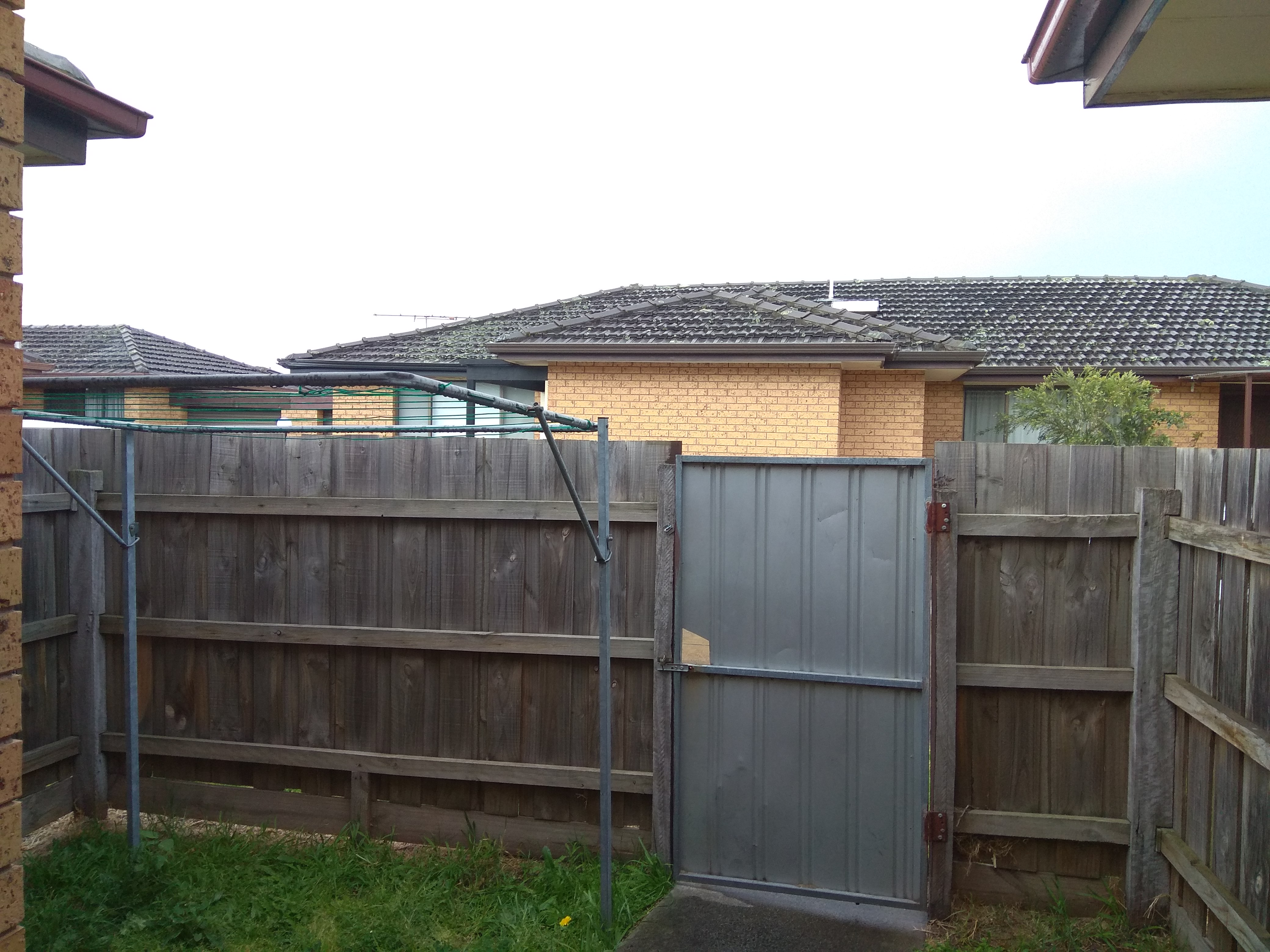 Credo che fissata sul palo dello stendino vicino alla porta metallica possa andar bene. D'altra parte non hai molte alternative, giusto?