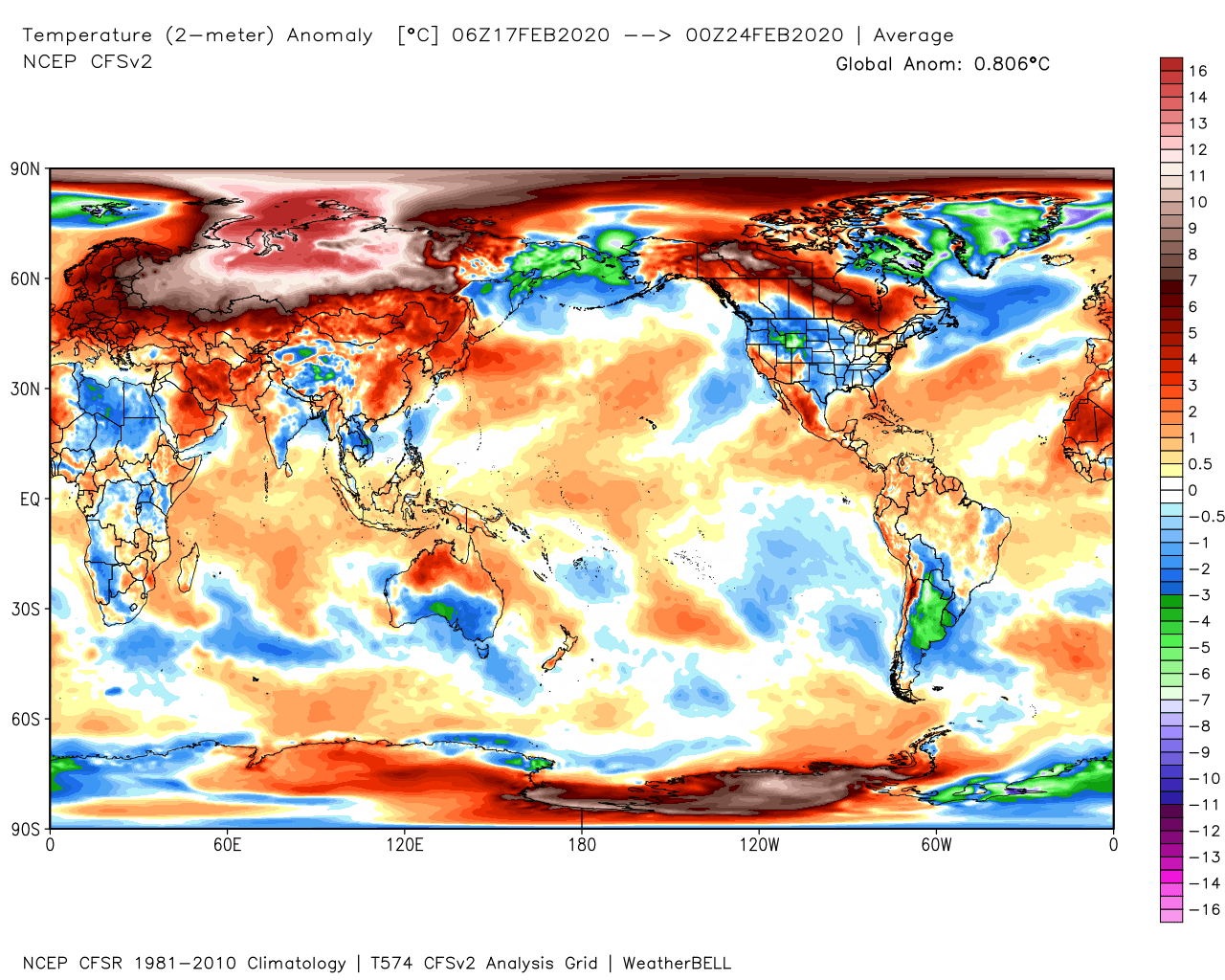 La media dei primi 20 giorni è di quindi a +3,5° dalla media totale, ovvero a +0,8°  dal febbraio 2016, il più caldo almeno dal 2005.