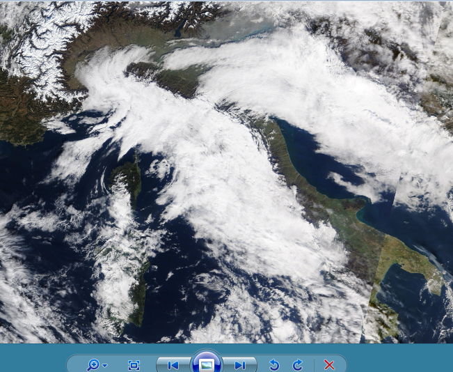 La scansione Modis/Terra acquisita alle ore 11:34 locali evidenzia un bel “buco” aperto tra le nebbie nei pressi del Capoluogo. O almeno così sembrerebbe. Utilizziamo la georeferenziazione fornita dai generosi strumenti di telerilevamento NASA (precisione dell’ordine dei 250 metri) per capire in quali quartieri vivono i milanesi che per primi sono stati baciati dai raggi del sole.