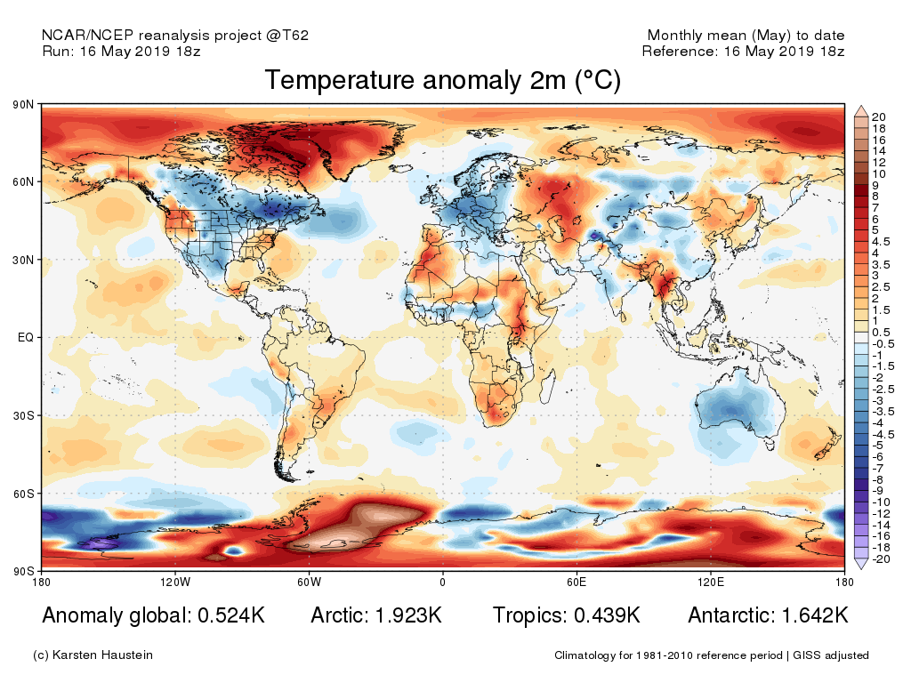 Li cova esattamente ciò che sta pilotando continue correnti fresche e instabili su gran parte d’Europa, cioè le spinte calde che costituiscono la spalla orientale dell’anticiclone azzorriano proteso verso nord. Sai da te che quando si guardano le anomalie termiche su periodi relativamente brevi bisogna avere bene in testa la disposizione barica, senza quell’anomalia positiva non ci sarebbe quella negativa europea  Comunque L’Africa settentrionale ha avuto notevoli anomalie negative durante tutto l’inverno.