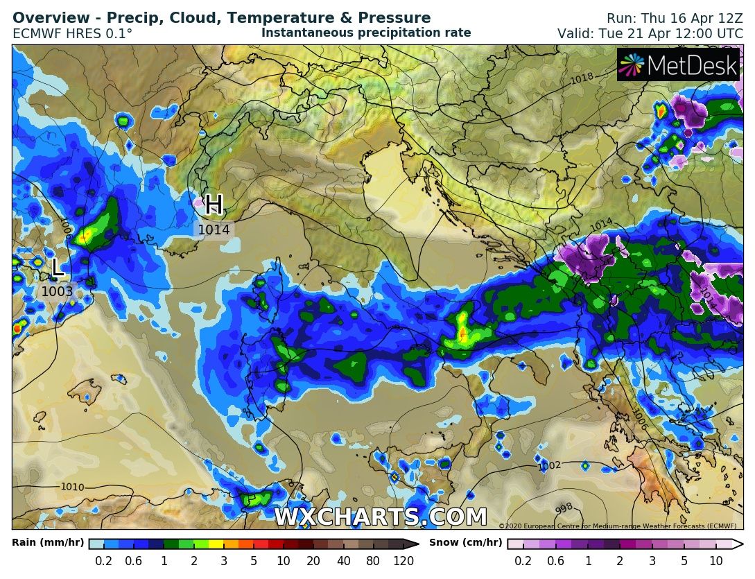 Stante così Reading (e sottolineo "stante così") già da tarda domenica/inizio lunedì entrano le prime discrete piogge (ma parlare di intensità ora è fatuo). Poi tu sei più in basso e la linea di convergenza tra lunedì notte e martedì potrebbe passarti sopra. Quassù martedì sembra già tagliarci fuori passata la mattina e poi spazzarci il grecale.