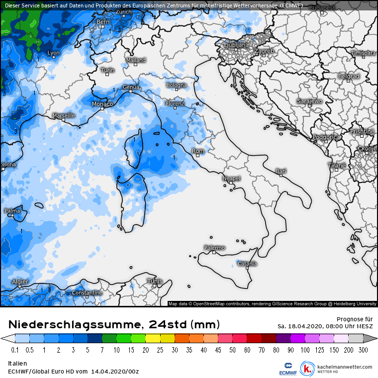 Si anticipa al sabato mattina 18 aprile anzichè la seradel 18 aprile con ECMWF e con le prime piogge: