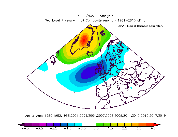 in Atlantico nel NH c'è sempre un anomalia positiva, tu dove la indichi? dici genericamente in Atlantico...e non si capisce a quale schema su macroscala ti riferisci...Nord Atlantico? Medio Atlantico? Basso Atlantico? Ovest Azzorre?Est Azzorre? In quell'assetto circolatorio si forma un tipico bipolo formato da anomalie positive groenlandesi e anomalie negative tra ovest UK e Scandinavia con tipica distensione su quei paralleli formante un tipico blocco basso pressorio.