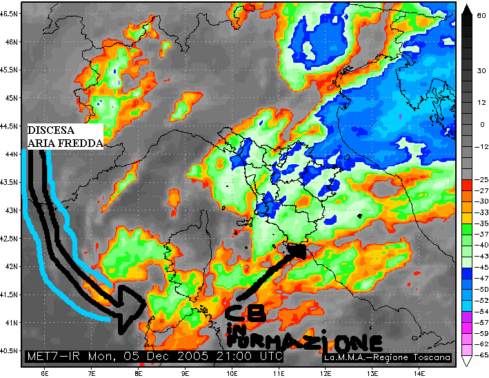 Un'analisi per il brevissimo periodo è già intuitiva vedendo il Lamma. Ho cercato di individuare quelli che sono i cb in formazione sul Tirreno che probabilmente ci faranno ballare tutta la notte!