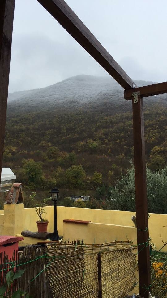 A Lugnano nella notte forte pioggia e grandine con annessi tuoni. Neve sopra casa mia dai 500m (versante N - NW)