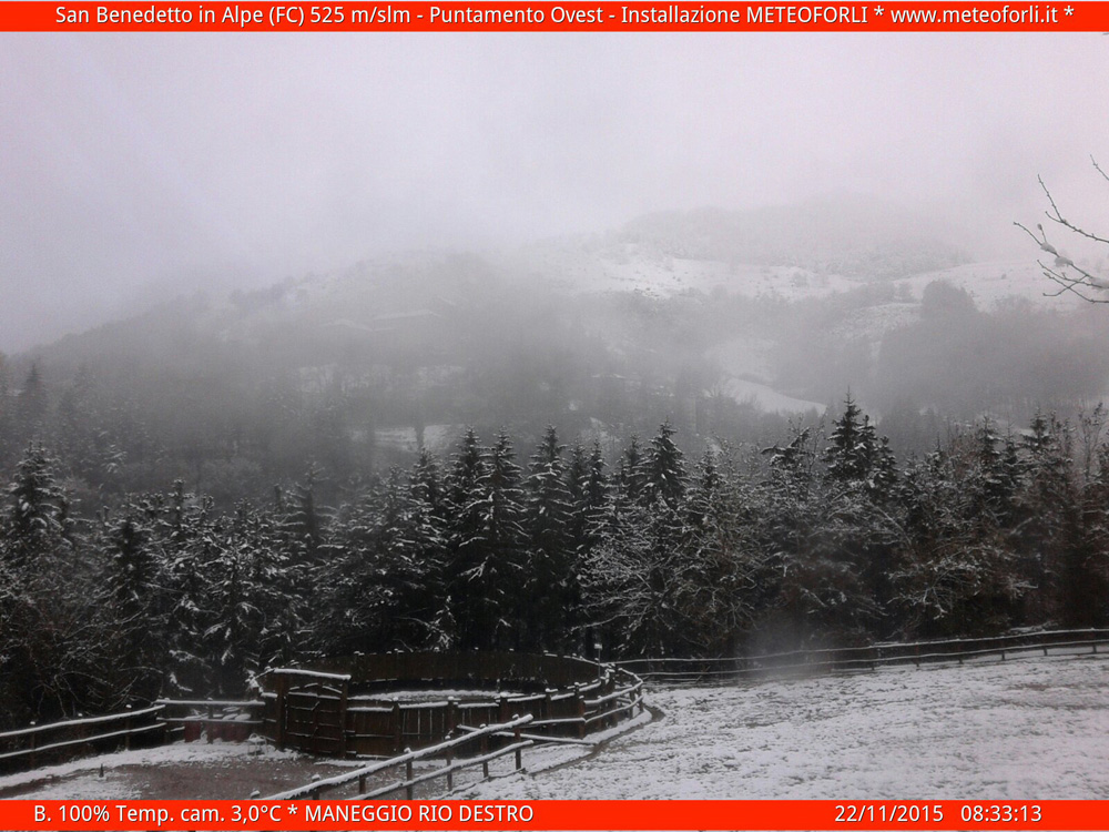A San Benedetto in Alpe (FC), a 500 m. di quota, era tutto bianchissimo, innevato, con bella nevicata in corso. Me ne sono andato via che nevicava ancora in maniera importante.