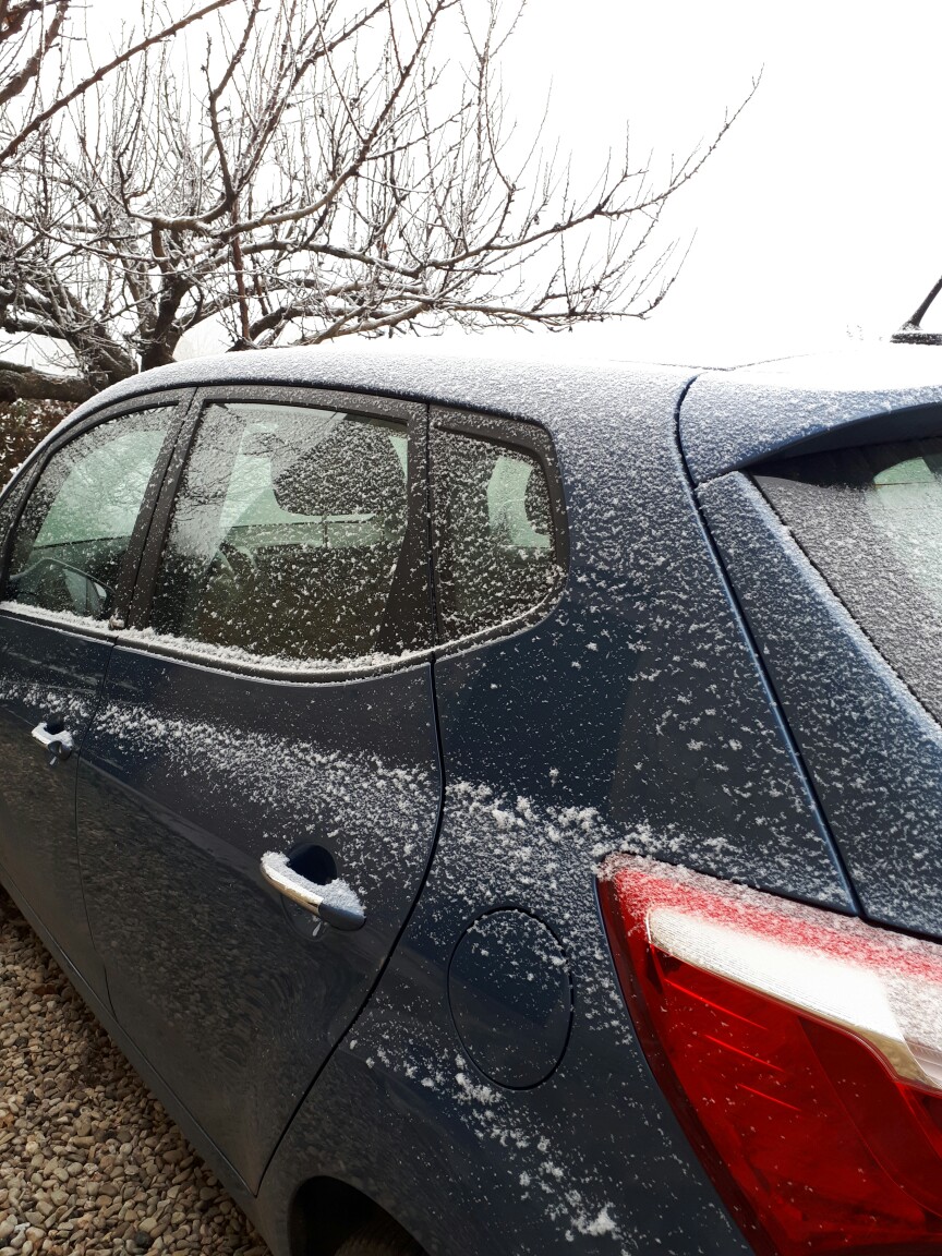 Scusa ma non ti sembra che sia caduta un po' di neve? Si vedono i fiocchi distintamente. Specie sopra la macchina sono scivolati sui lati, non mi sembra solo galaverna, é roba farinosa.