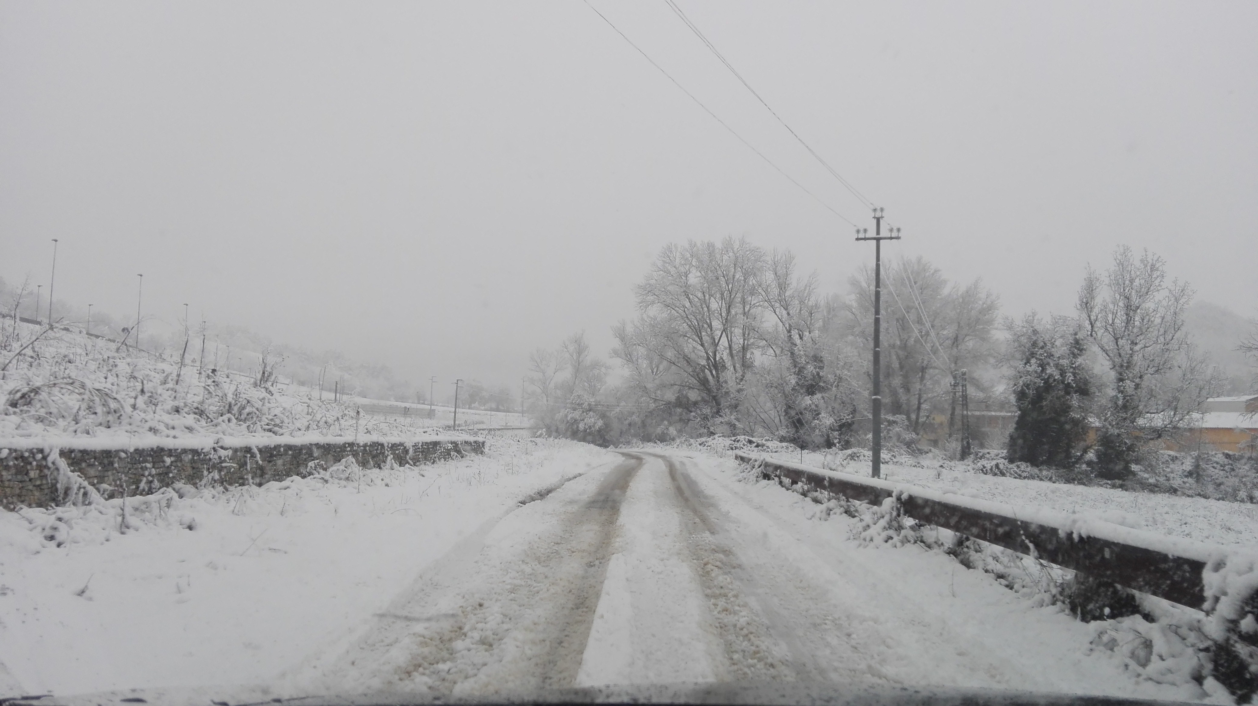 Nevicata commuovente, intensa, almeno 10 cm al suolo e temperatura che dal termo auto oscilla tra +0.0 e +0.5°C.