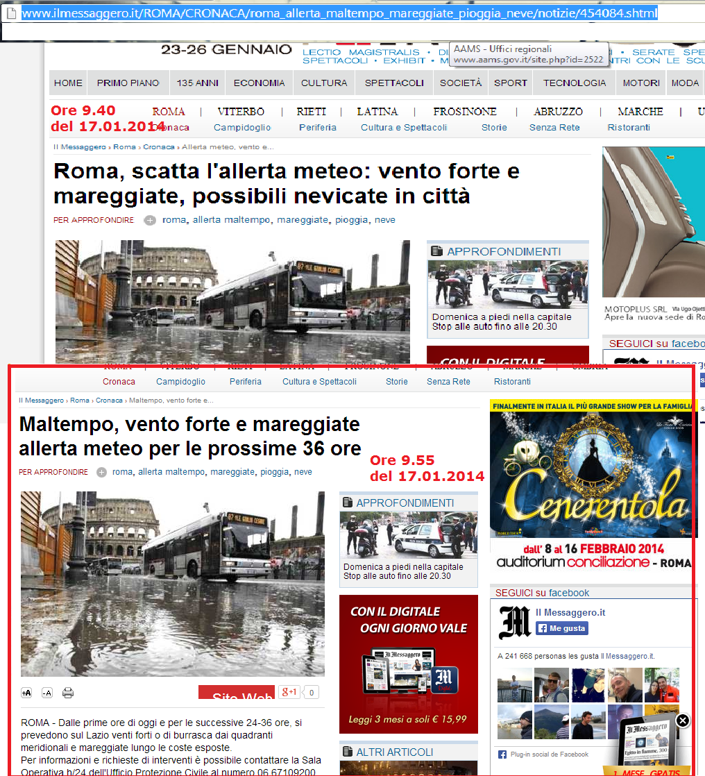 IL MESSAGGERO DI ROMA: Possibile neve in città