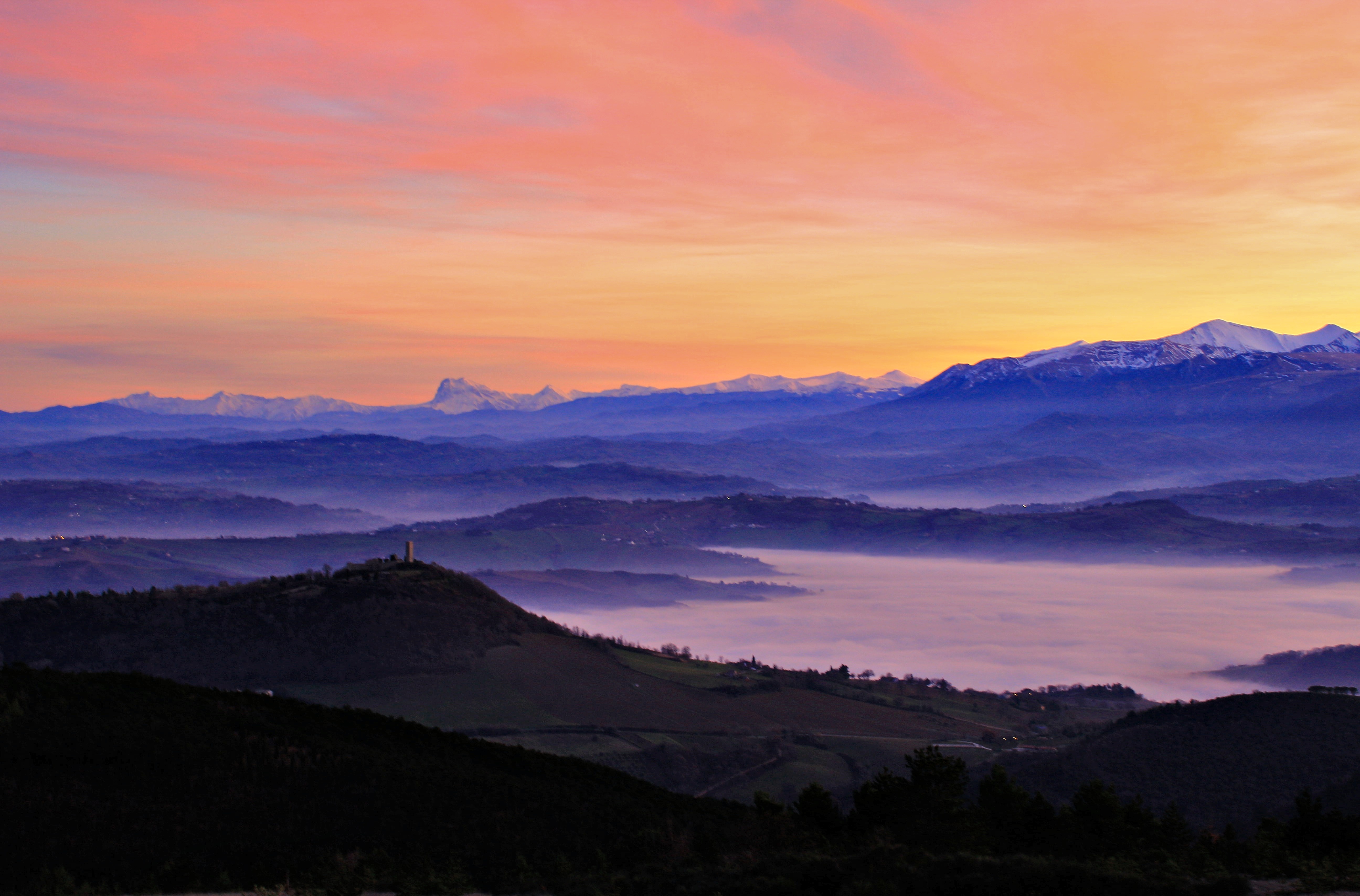 Quella in primo piano nell'ultima foto dovrebbe essere la torre di Pitino, con dietro la vallata del Potenza e San Severino. Ancora più dietro ci sto io. :D