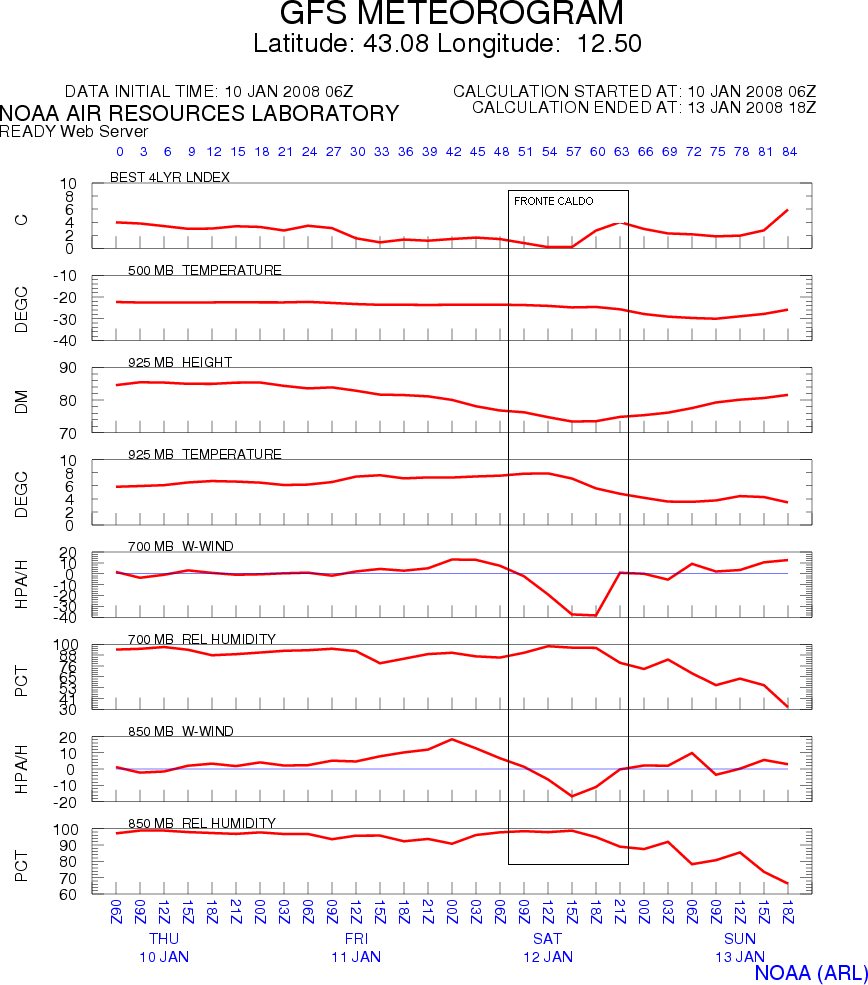 Stavolta, per non essere accusato di sciovinismo, ho preparato il meteogrammino per Perugia, avvertendo che a 600 hpa i parametri precipitativi sono discreti già dal venerdì pomeriggio.