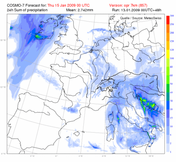 Ecco in breve, grazie all'elaborazione COSMO una mappa delle precipitazioni previste fino alla mezzanotte di domani: