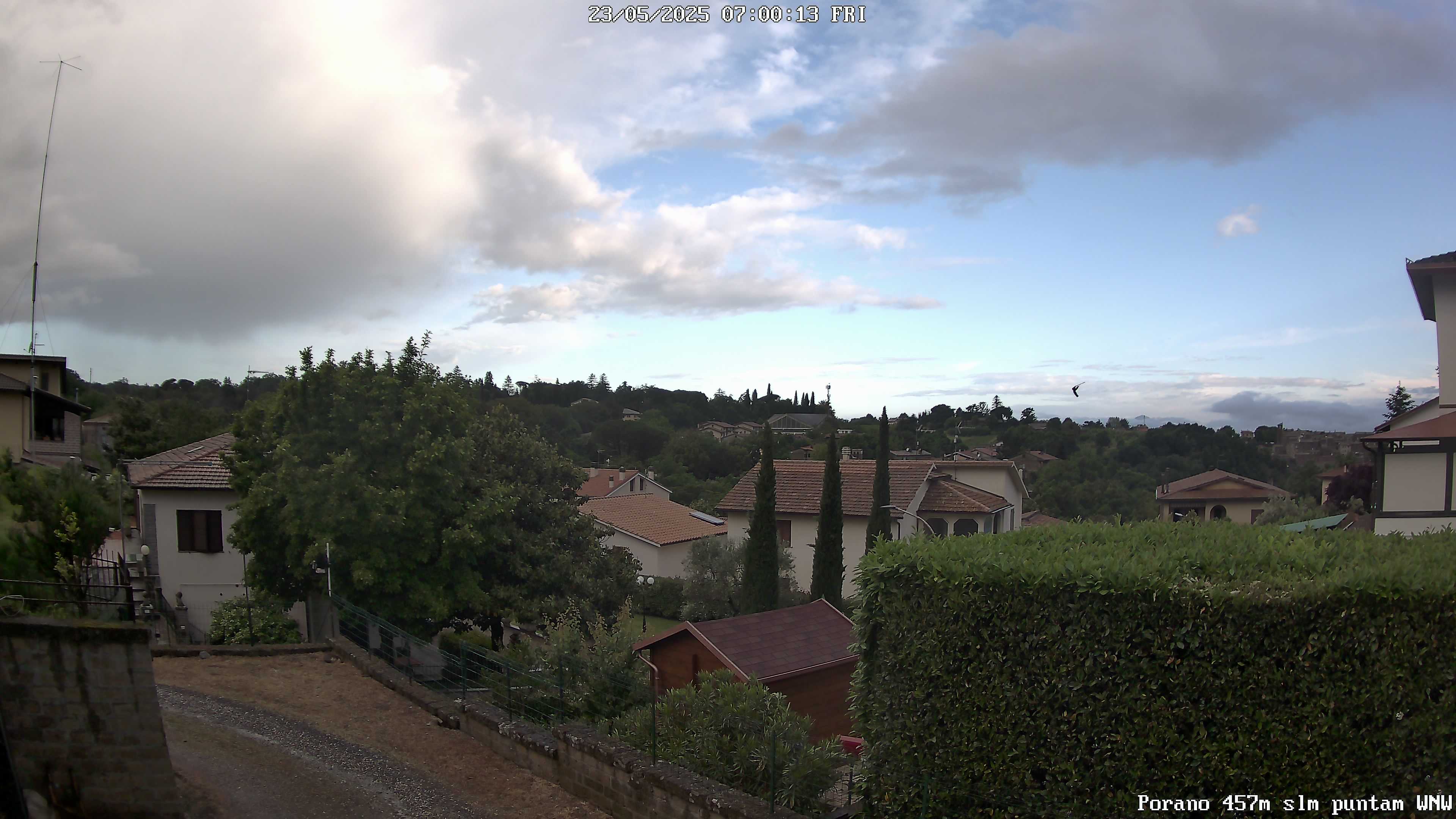 Minima di +12.8°C, +17°C in questo momento. Cielo molto nuvoloso, ma senza fenomeni.