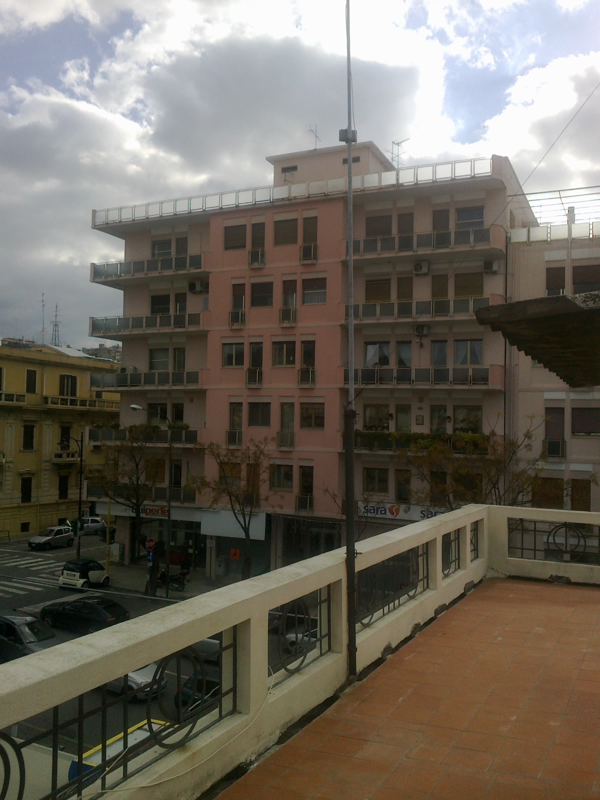 Il vero problema, a mio parere, non è la possibile influenza del terrazzo. Reggio Calabria è una località abbastanza ventosa: cerca di fissare bene il palo, con almeno due staffe al muretto del terrazzo e, se possibile, mettici dei tiranti in cima , perché 4 metri sono tanti e il palo (spero che sia almeno da 1'' e 1/4) oscillerebbe molto. Tieni conto che se oscilla troppo, il pluviometro ti darà letture in sovrastima quando piove a vento.