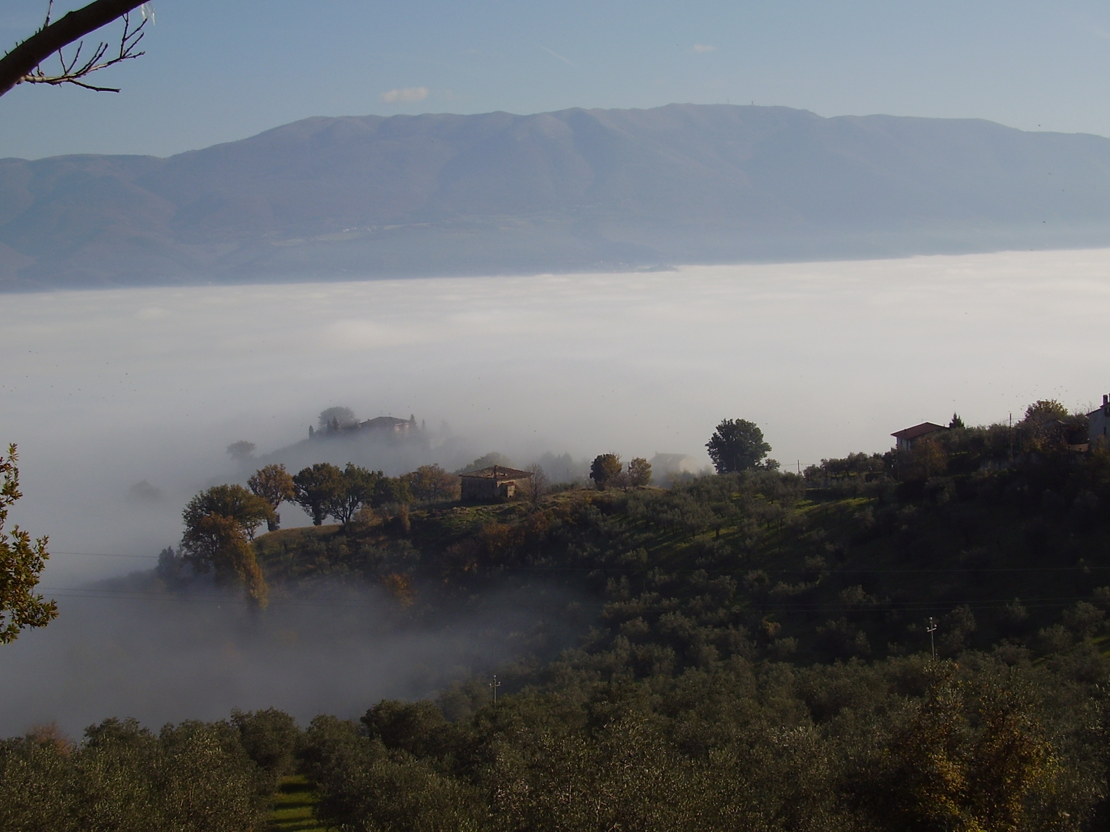 In questi giorni l'alta pressione ormai in fase di "invecchiamento", sta favorendo il ristagno di umidità, nebbie e foschie dense nelle zone basso collinari e vallive, lo strato di inversione oppone resistenza sotto i 500/600m di quota dove si nota il "tappeto" esteso di nubi basse e nebbie ... dalle alture il panorama è veramente indescrivibile !