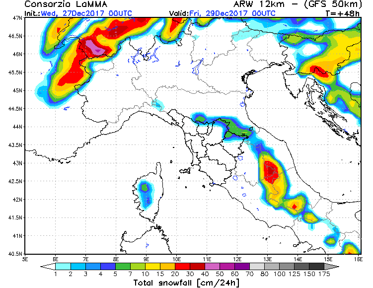 In realtà pure nel caso del 16 Dicembre precipitò ovunque solo che le aree in cui cadde neve a quote basse furono limitate alla zona di confine tra Umbria e Toscana laddove cioè andò a posizionarsi la parte più fredda del nucleo.