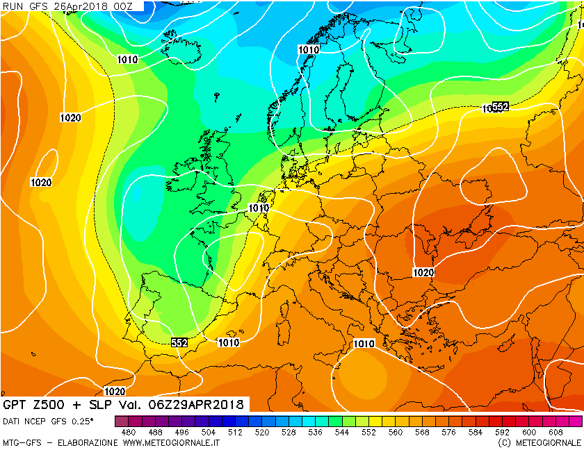 Peggioramento di maggio che inizierà proprio il 1° con affondo atlantico fino al Nord Africa per poi proseguire con cut off e relativa depressione sull'Italia centrale fino al 4 maggio.