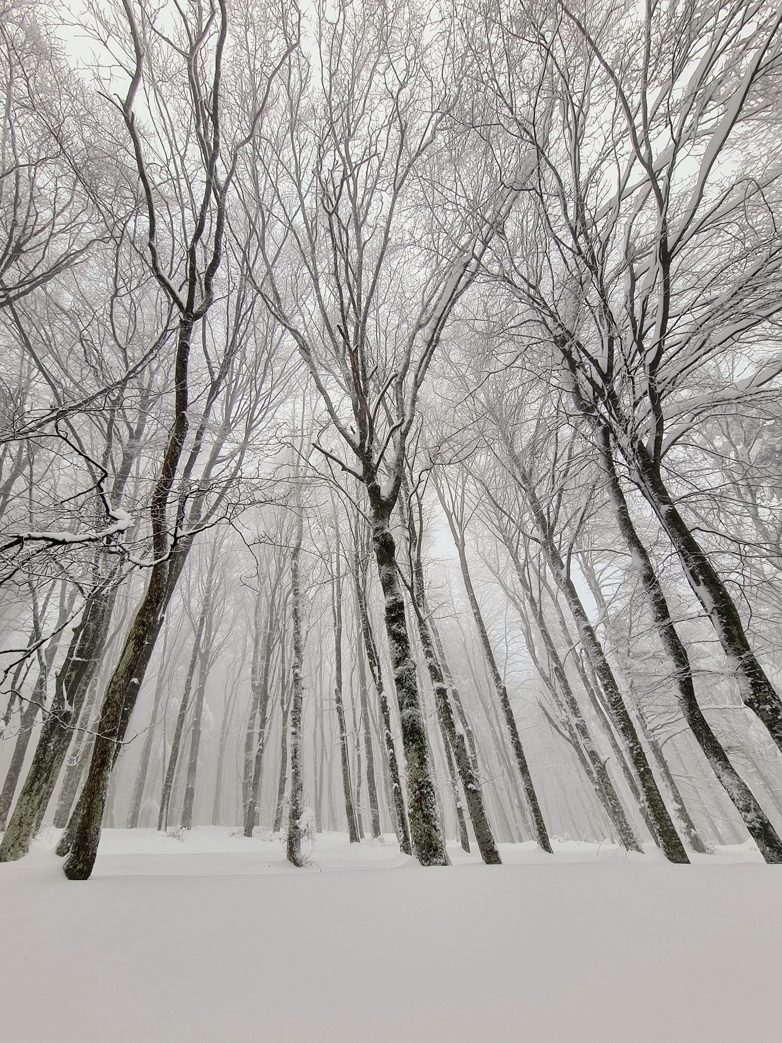 Fantastica ciaspolata ieri sul monte San Vicino con una copertura nevosa rimasta quasi intatta da una settimana, dai 900mt a salire non ha sciolto nulla, solo nei punti al riparo ed esposti al sole ha fuso parzialmente il manto, ma si sa bene che il sole marzolino incomincia a far la differenza. Altra neve fresca poi si è aggiunta da venerdì a quella vecchia già accumulata precedentemente. Il manto nevoso variava dai 50cm fino a toccare il metro di altezza, probabilmente da metà sentiero del massiccio eravamo ben oltre i 100cm. Inoltre la giornata era incredibilmente perfetta a livello meteo: c'era quel mix di nebbia, galaverna e nevischio che rendeva l'atmosfera molto suggestiva agli occhi di un meteo appassionato.
